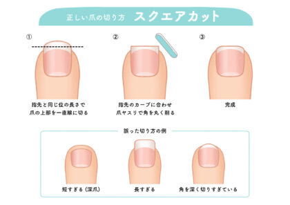 深爪は巻き爪の原因になります。深爪をすると、歩行などで足の指に力が下から加わったときに爪の先のはみ出ている皮膚が盛り上がってしまい、爪がまっすぐに伸びず、曲がってしまうことで巻き爪がおきます。